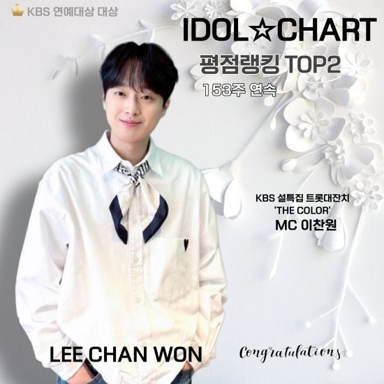 이번 평점 랭킹을 통해 이찬원의 연속 2위 기록은 153주로 늘어났다. 그리고 '좋아요' 역시 12,216개를 획득해 전체 2위에 올랐다.