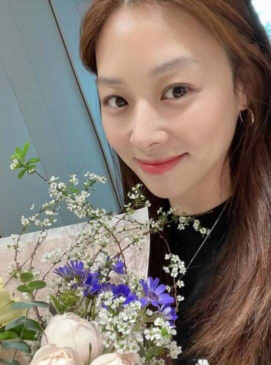 공개된 사진에서 장신영은 꽃다발을 든 채 여전히 아름다운 미모를 뽐냈다.