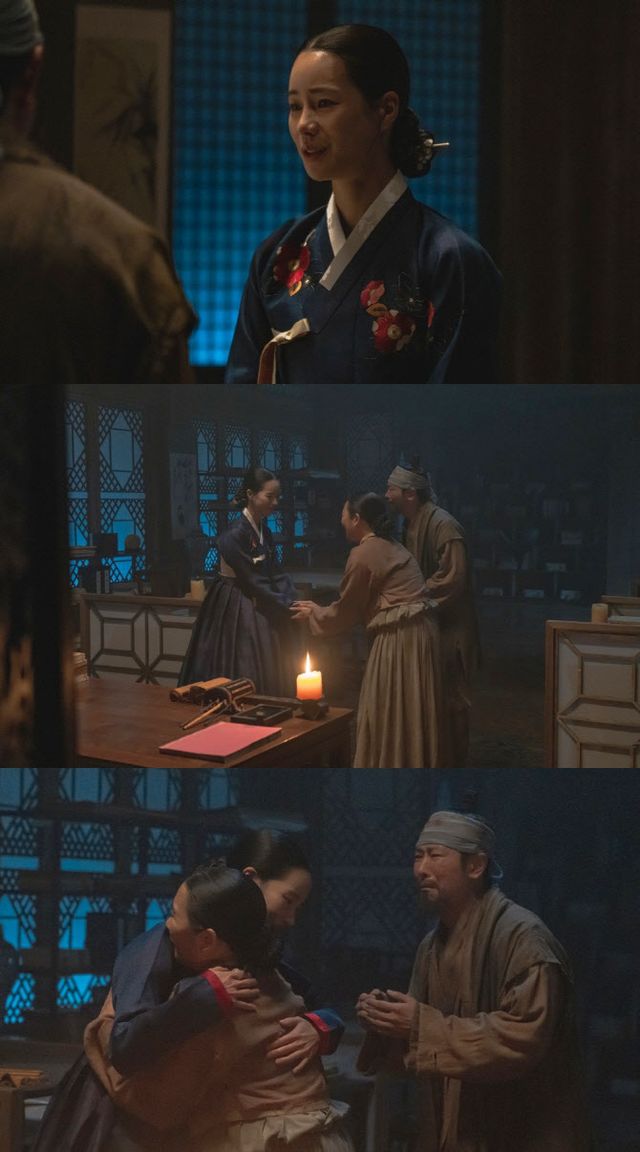 공개된 사진 속에는 야심한 밤, 옥태영의 집무실에서 마주하고 있는 세 사람의 모습이 포착돼 눈길이 쏠린다. 이들을 애틋한 눈빛으로 바라보고 있는 옥태영과 옥태영의 손을 덥석 잡은 금복, 이를 바라보는 꺽쇠에게서는 이루 말할 수 없는 복잡한 감정이 느껴져 더욱 강렬한 인상을 남기고 있다.