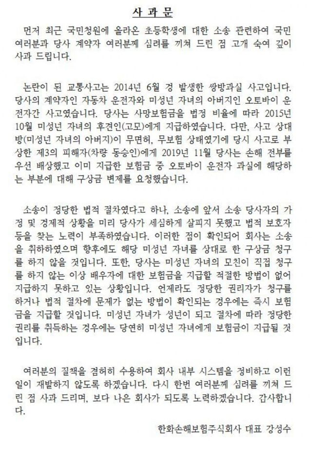 8. 결국 한화보험대표가 직접 대국민사과 발표 후 빤쓰런