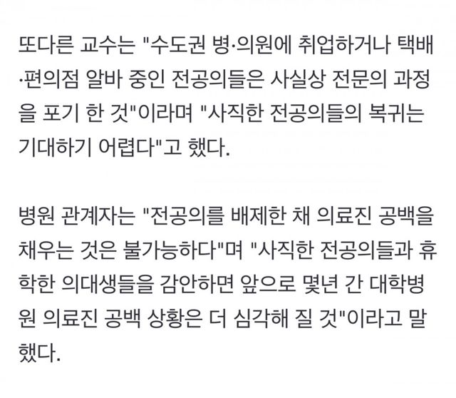 사직 전공의 생활고에 택배·편의점 알바 뛴다