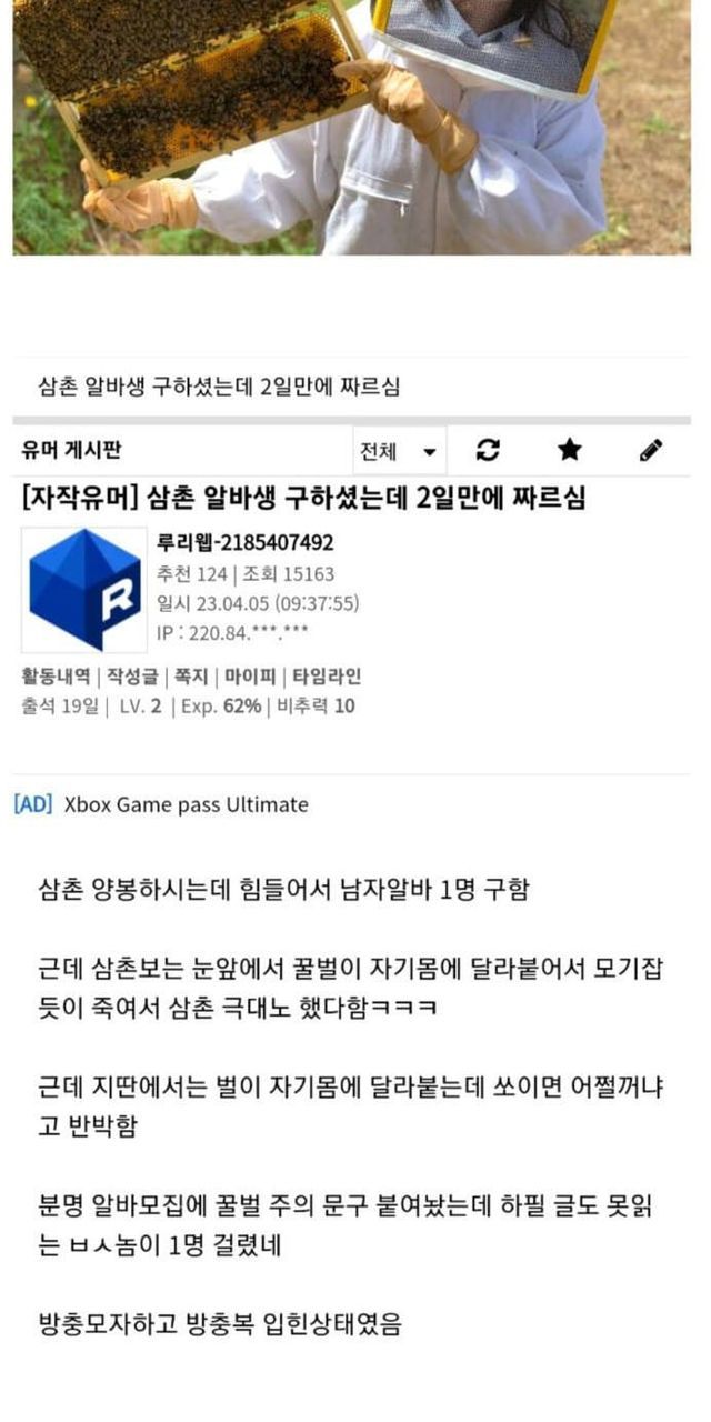 양봉장에서 이틀 만에 계약 해지당한 알바