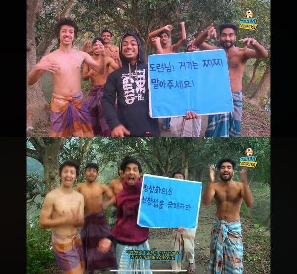 영상 속에서 방글라데시 출연자들은 상의를 탈의한 채 숲속에서 한글로 작성된 팻말을 들고 춤을 추며 특정 문구를 합창했다.