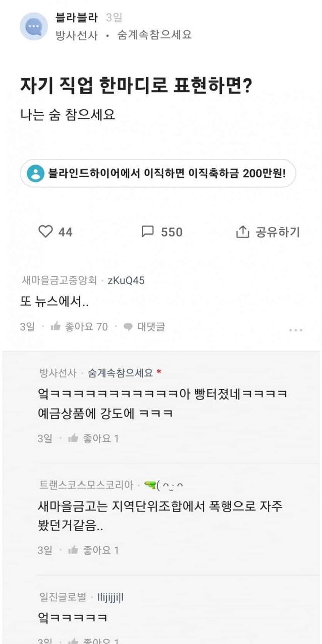 자기 직업 한마디로 표현하기