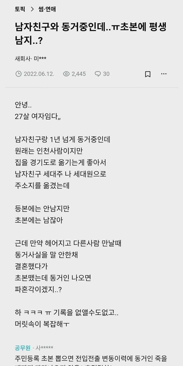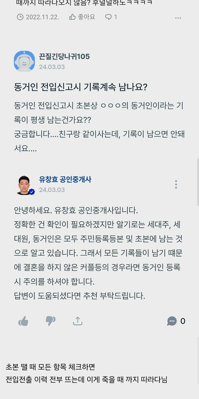 앞으로는 결혼하기전 초본도 떼어보아야할 시대가 된듯 합니다 ㄷㄷㄷ