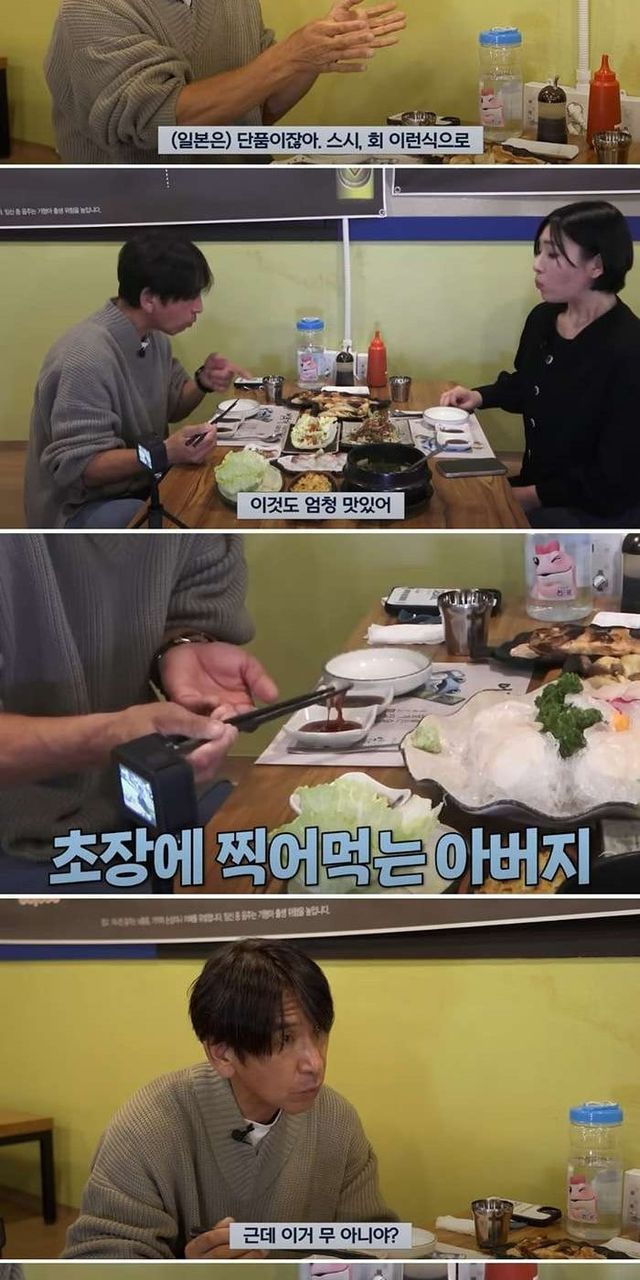 한국 회를 처음 먹어본 일본인 아빠