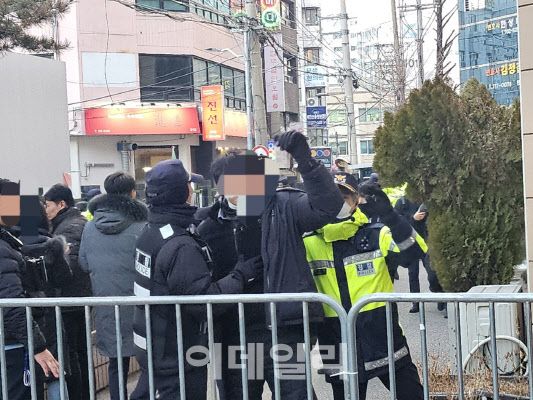 이날 오후 5시 20분께 한 집회 참가자는 경찰이 법원 주변에 설치한 바리게이트를 뛰어넘어 내부로 진입하려다 붙잡혀 연행됐다.