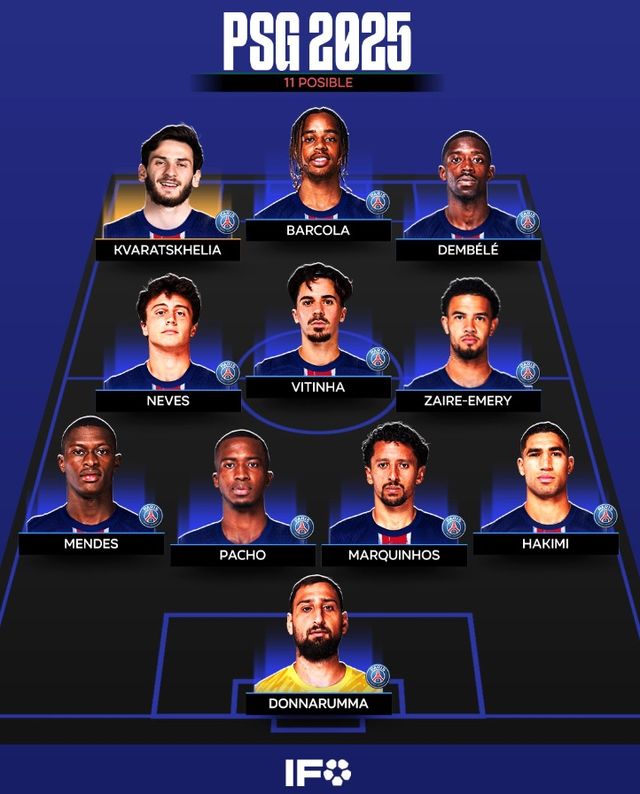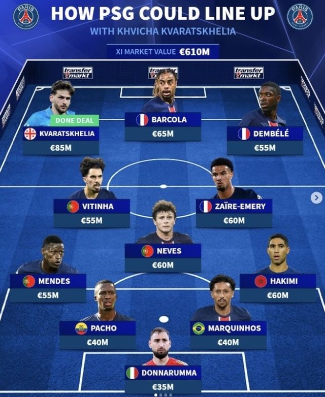 독일 이적시장 전문 매체 '트랜스퍼마르크트'는 흐비차가 브래들리 바르콜라와 우스만 뎀벨레와 함께 PSG 최전방 스리톱을 구성할 것으로 내다봤다. 중원의 세 자리는 비티냐, 주앙 네베스, 워렌 자이르-에메리가 차지했다.