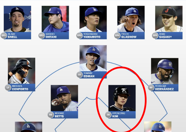 'MLB 네트워크'는 "이 로스터가 역대 최고 중 하나가 될 수 있을까요?"라는 질문과 함께 포수 윌 스미스-1루수 프레디 프리먼-2루수 김혜성-3루수 맥스 먼시-유격수 무키 베츠-좌익수 마이클 콘포토-중견수 토미 에드먼-우익수 테오스카 에르난데스-지명타자 오타니 쇼헤이를 예상했다.