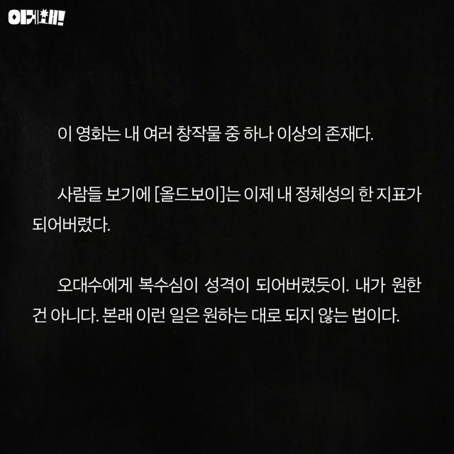 올드보이 만든 후에 돌아본 박찬욱의 소감