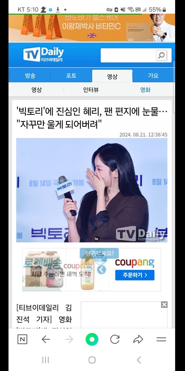 영화 칭찬해주는 팬 편지 읽고 운 거임