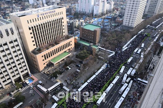 윤 대통령은 18일 오후 2시부터 서부지법에서 영장실질심사를 받았다. 이에 지지자들은 급히 서부지법 앞으로 집결했다. 이날 서울 광화문에서 ‘탄핵 반대’ 집회에 참가한 이들도 서부지법 집회에 뒤늦게 합류하면서 일대가 아수라장이 됐다. 이날 오후 5시 기준 경찰 비공식 추산 5만여명이 모였다.