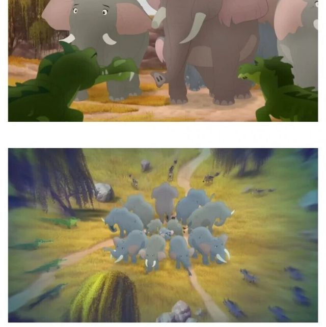 새끼 코끼리와 습격하는 육식동물들 사이에서 고뇌하는 코끼리