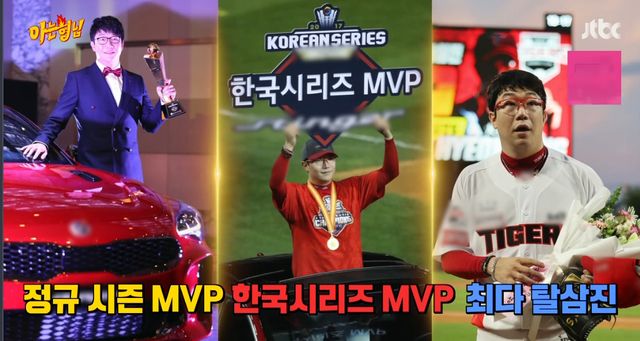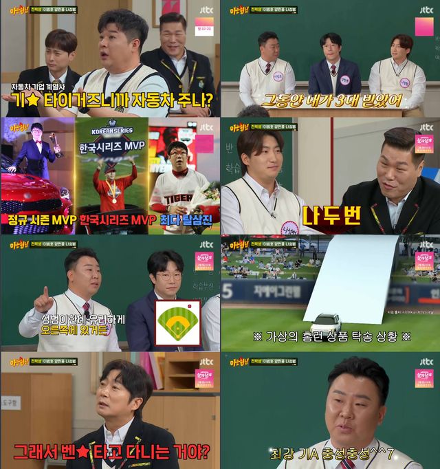 18일 방송된 JTBC ‘아는 형님’에서는 통산 12번째 프로야구 한국시리즈 우승을 차지한 기아 타이거즈의 이범호 감독, 양현종 선수, 나성범 선수가 출연해 다양한 이야기를 전했다.