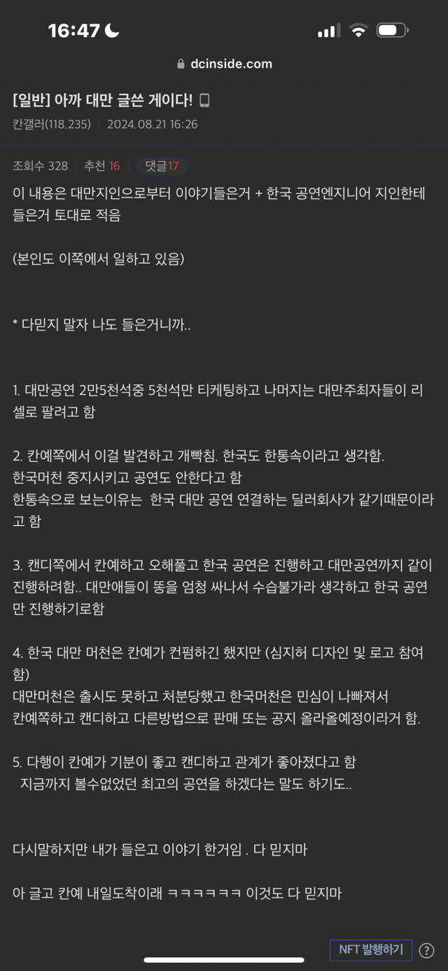 다들 안믿다가 저거 보고서라도 갈걸 하고 후회중