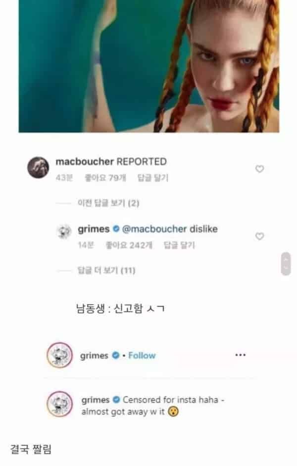 누나의 사진을 본 동생의 대처