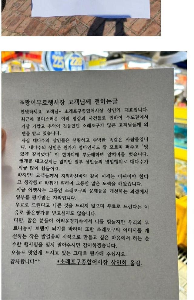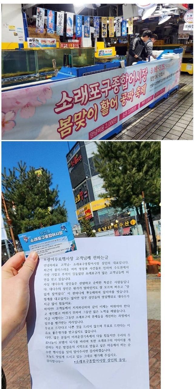 소래포구 상인회에서 고객들에게 전달한 사과문