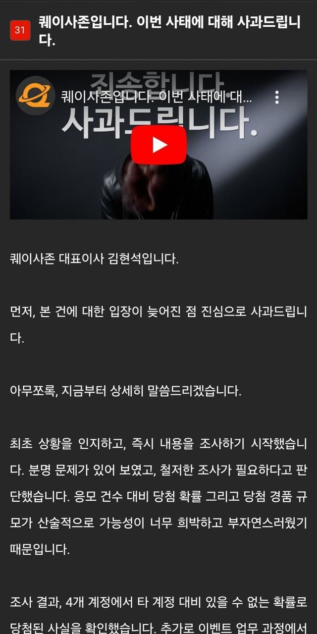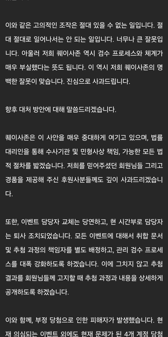 퀘이사존입니다. 이번 사태에 대해 사과드립니다.