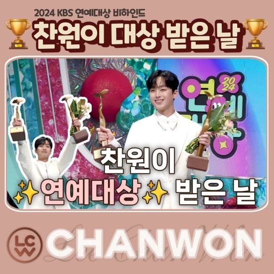 17일 이찬원 공식 유튜브 채널은 "2024 KBS 연예대상 비하인드 : 찬원이 대상 받은 날"을 업로드했다.