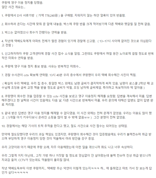 4. 경찰이 cctv보니 쿠팡맨이 상자 회수해간게 찍힘