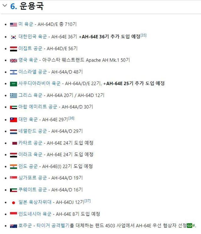 미국제외 아파치헬기 전력도 세계 최고수준…