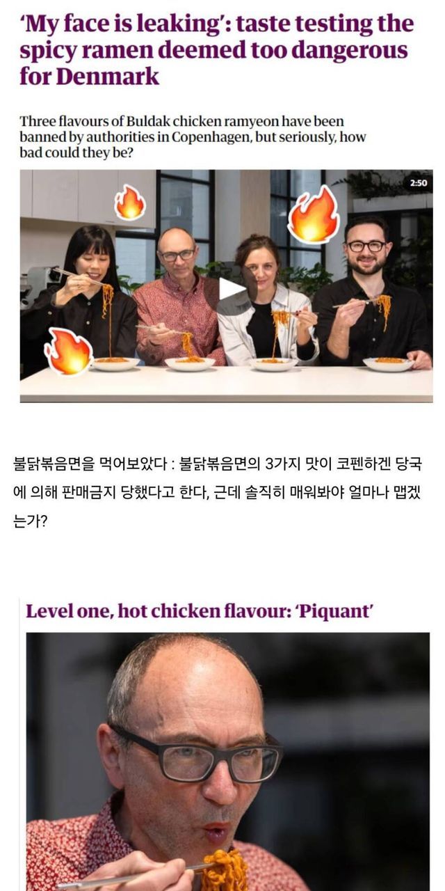 덴마크에서 금지당한 불닭볶음면 시식해본 해외 기자들 반응