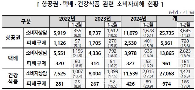 소비자원에 따르면 항공권, 택배, 건강식품 품목은 명절 연휴 전후로 구매·이용이 증가하는 분야로, 이와 관련한 소비자 피해가 계속 발생하고 있어 각별한 주의가 필요하다.