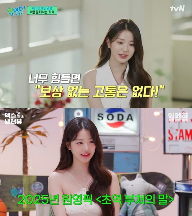 2024년 '원영적 사고', '럭키비키' 열풍을 불러일으킨 장원영은 지난 15일 '유퀴즈'를 통해 또 하나의 어록을 남겼다. 바로 "보상 없는 고통은 없다"다.