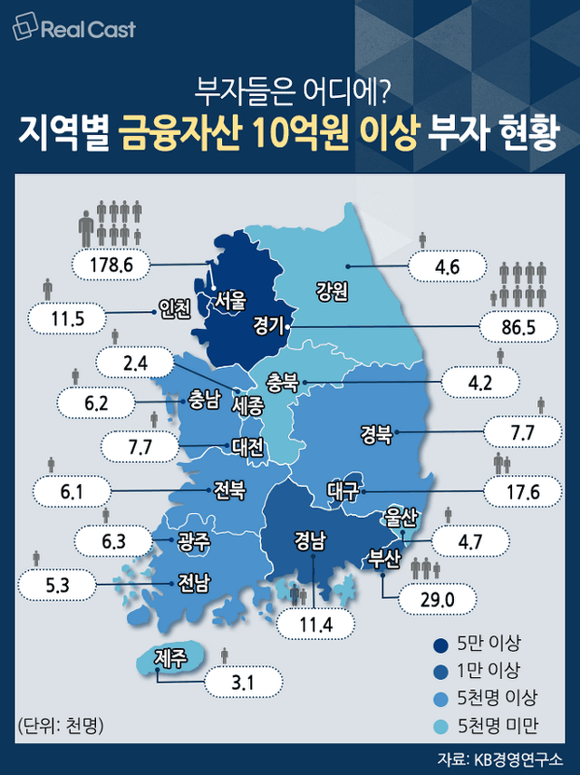 우리나라 지역별 부자 수와 사람들이 생각하는 부자