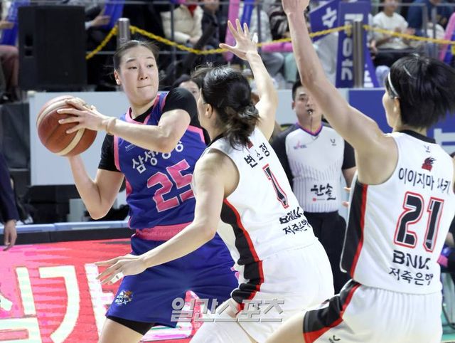 삼성생명은 19일 경기 용인실내체육관에서 열린 2024~25 여자프로농구 정규리그 5라운드 홈경기에서 BNK를 65-61로 제압했다.