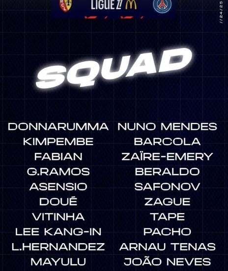 이강인 소속팀인 프랑스 최강 파리 생제르맹(PSG)은 19일(한국시간) 프랑스 랑스에 위치한 스타드 볼라르트 들렐리스에서 열린 2024-2025시즌 프랑스 리그 1 18라운드 랑스와 맞대결에서 2-1로 승리했다.
