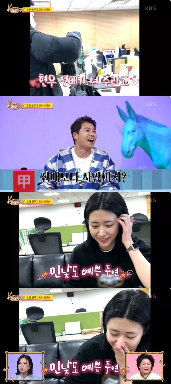 [메디먼트뉴스 김수현 기자] KBS 2TV 예능 프로그램 '사장님 귀는 당나귀 귀'에서 MC 전현무가 후배 아나운서 홍주연에게 크리스마스 이브에 깜짝 선물을 전달하며 핑크빛 기류를 형성했다.
