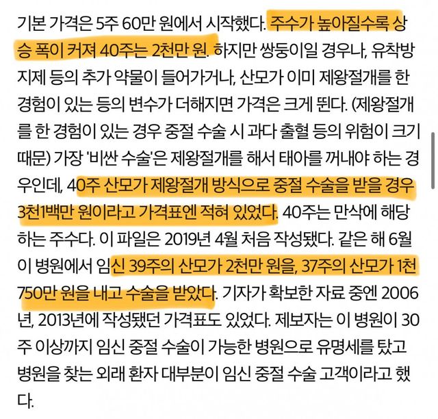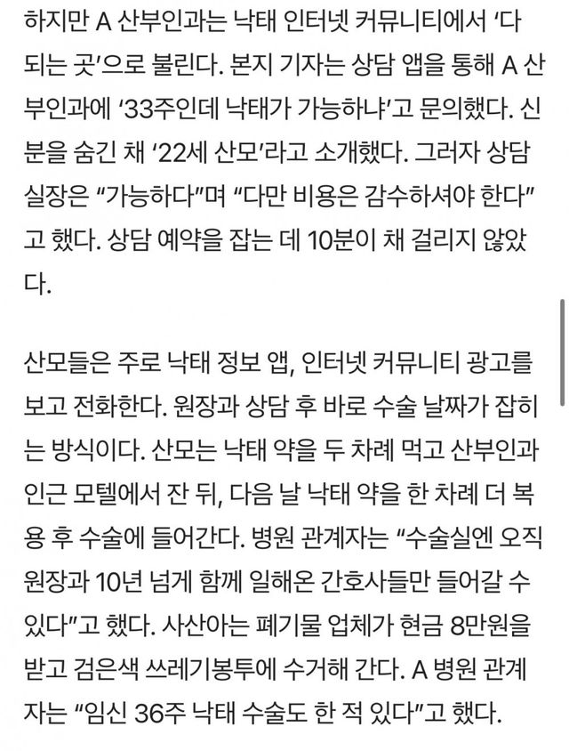 낙태가격표 공개… 40주는 2천만원부터 시작 ㄷㄷ
