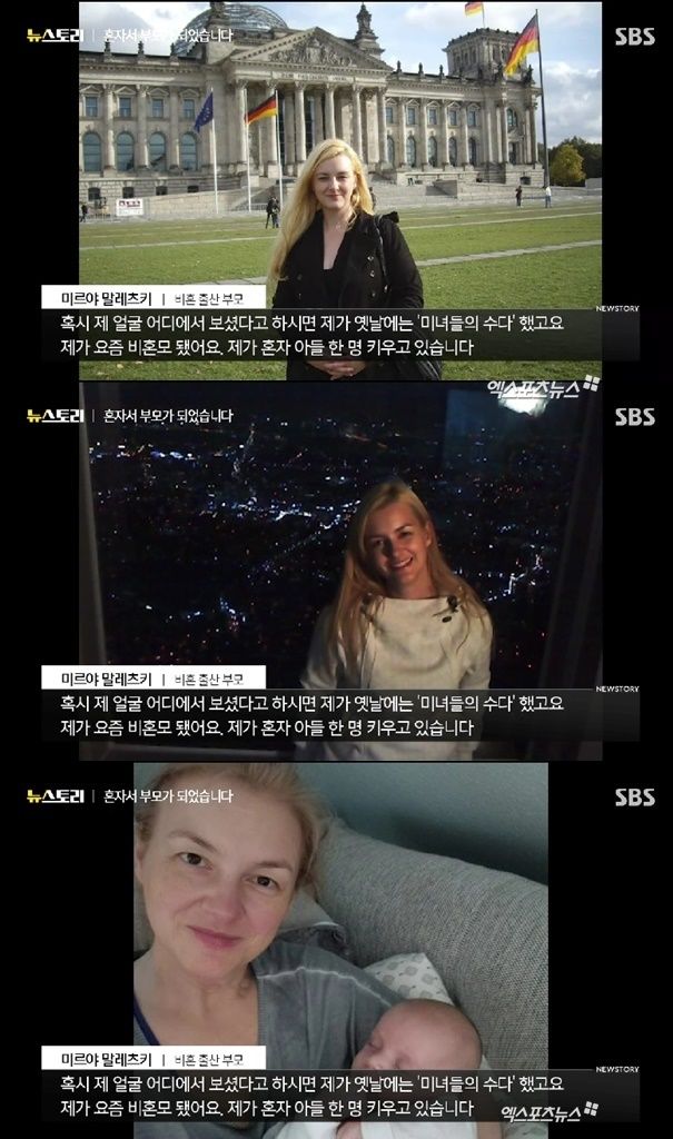 18일 방송한 SBS ‘뉴스토리’는 혼자서 부모가 되기를 선택한 다양한 가족 유형을 소개했다. 그 중 KBS '미녀들의 수다'에 출연해 얼굴을 알린 독일인 미르야 말레츠키 역시 비혼모의 길을 걷고 있음을 알렸다.