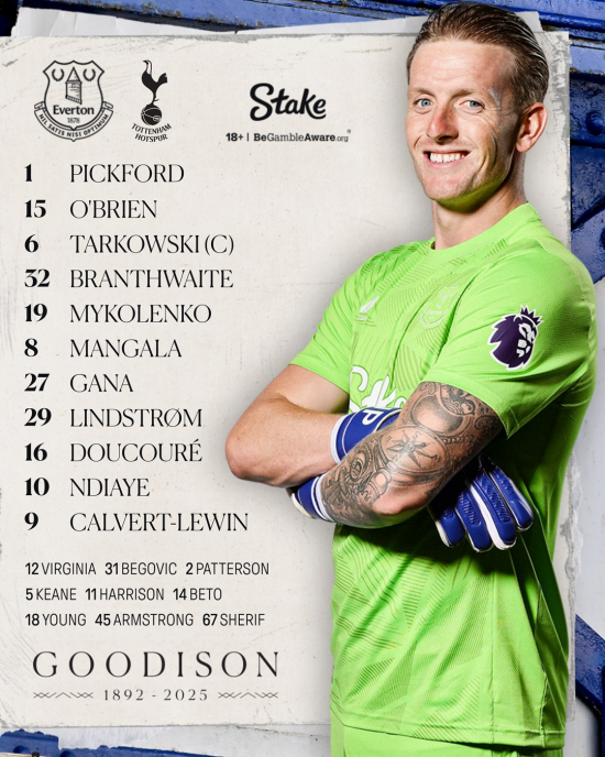 에버턴은 4-2-3-1 전형으로 맞선다. 조던 픽포드 골키퍼를 비롯해 제이크 오브라이언, 제임스 타코우스키, 제러드 브렌스웨이트, 비탈리 미콜렌코가 수비를 구축한다. 중원은 이드리사 가나 게예, 압둘라예 두쿠레가 지킨다. 2선은 오렐 망갈라, 릴만 은디아예, 예스페르 린스트룀이 맡는다. 최전방에 도미닉 칼버트르윈이 출격한다.