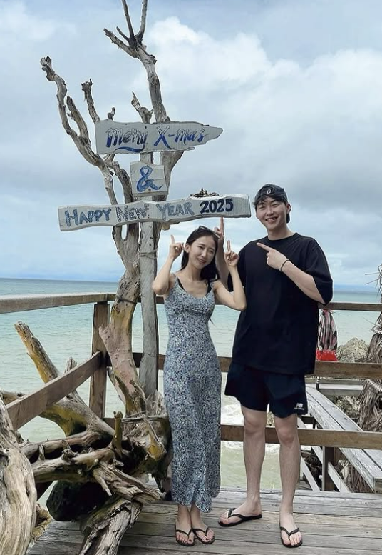 사진 속 박소영은 문경찬과 함께 이국적인 해변에서 다정하게 포즈를 취하고 있다.