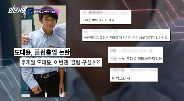 19일 방송된 ENA 예능 ‘언더커버’ 2회에서 도대윤은 1라운드 1대 1 부스 오디션 무대에 섰다.
