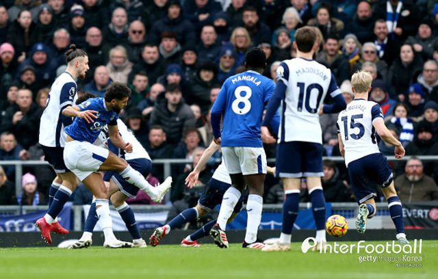 에버턴이 격차를 벌렸다. 전반 30분 은디아예가 단독 드리블로 드라구신을 흔든 뒤 날린 왼발 슈팅이 토트넘 골문을 뚫었다. 전반 추가시간 7분엔 그레이가 상대 헤더를 걷어낸다는 것이 그대로 자책골로 연결됐다. 토트넘이 0-3으로 리드를 내준 채 전반전이 종료됐다.