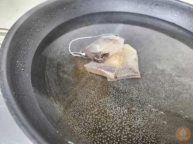 물 반쯤 채우고 보리차티백 넣어서 끓여보세요.
