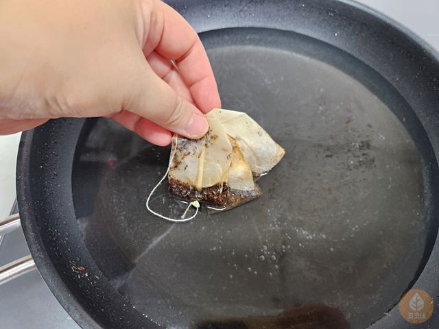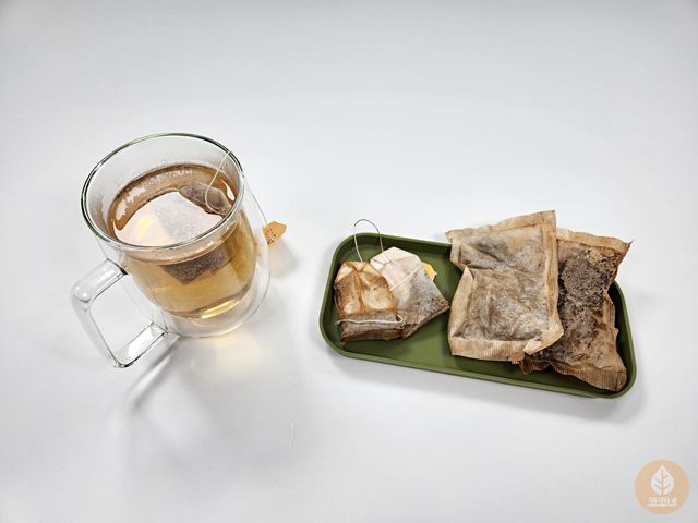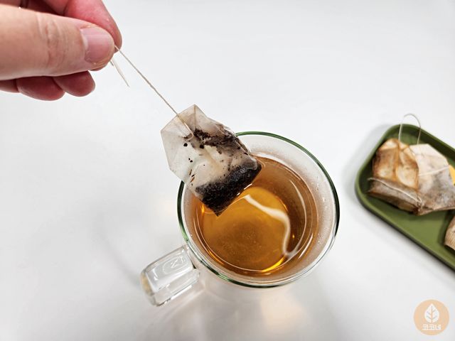 보리차 우리고 남은 티백을 꺼내는 그 순간