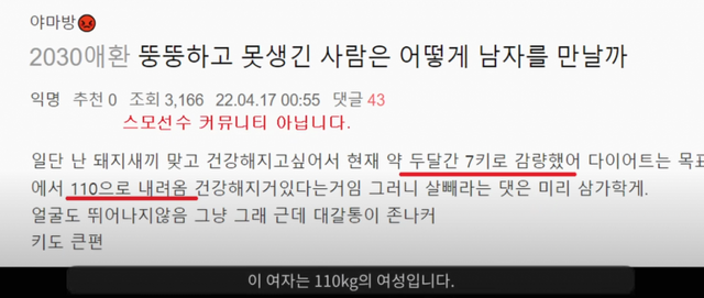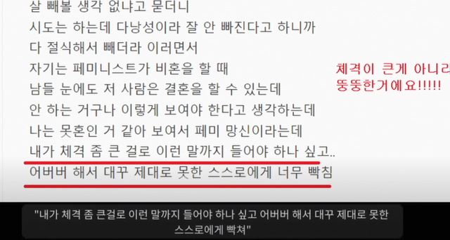 페미 망신 시키지말고 살 빼라는 소리를 들었다는 여시들