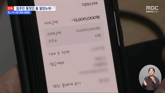 분명히 집주인 이름으로 보증금 보냈는데 집주인 통장이 아니라고함