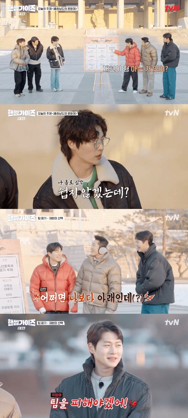이어 안재현은 '핸썸가이즈'에서 아는 문제가 있었냐고 묻자 "기억에 나는 문제는 많았는데 맞힌 건 없었다"고 답했고 김동현은 "확실히 오늘 3대 3이다. 똑똑 팀 3명, 안 똑똑 팀 3명"이라고 평했다.