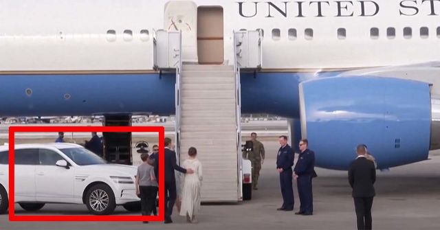 도널드 트럼프 미국 대통령 당선인 일가의 전세기 탑승 현장에 제네시스 GV80이 등장해 화제를 모으고 있다. / 'Voice of America' 유튜브 영상 캡처