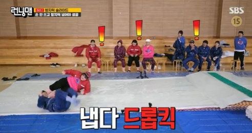 두 번째 미션 ‘방지턱 슬라이드;에서는 유재석과 박혜정의 대결이 성사됐다. 박혜정은 강력한 피지컬을 바탕으로 유재석을 발로 차며 위로 향했고 이를 보던 멤버들은 뜻밖의 드롭킥을 선보인 박혜정의 예능감을 칭찬했다.