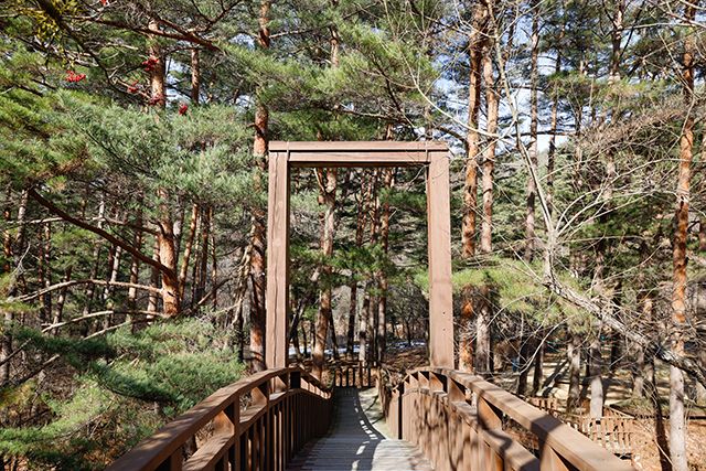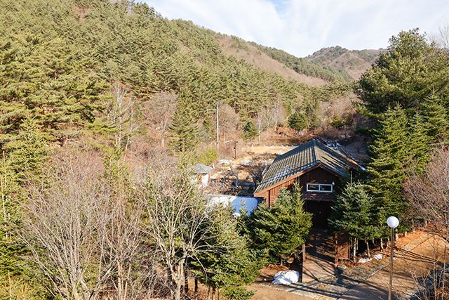 찬 기온을 머금은 바람이 살랑 부니 나뭇가지에 매달린 윈드차임에서 ‘차라라’ 소리가 울린다. 마치 실로폰을 연주하는 듯 기분 좋은 멜로디가 귓가를 간지럽힌다. 겨울에 오대산 기슭 숲속에 서 있으니 차분하게 가라앉은 평온함이 방문자의 마음을 부드럽게 어루만져 준다. 숲속의 상록수들이 변함없는 푸른 자태로 반겨주니 한겨울도 온기마저 느껴진다.