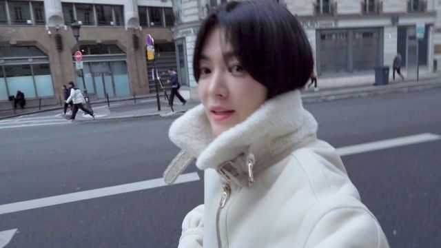 송혜교는 파리로 출장을 떠났습니다. 화이트 컬러의 무스탕을 입고 파리 시내를 거니는 모습을 영상에 담았는데요. 이 무스탕은 펜디의 제품으로 칼라와 포켓, 소매 끝에 시어링 디테일을 더해 포근해 보이면서 두툼한 아웃 스티치 디테일를 적용해 경쾌한 무드를 자아내는 아우터입니다. 과감한 화이트 컬러가 그녀의 미모를 더욱 화사하게 만들어 주네요.