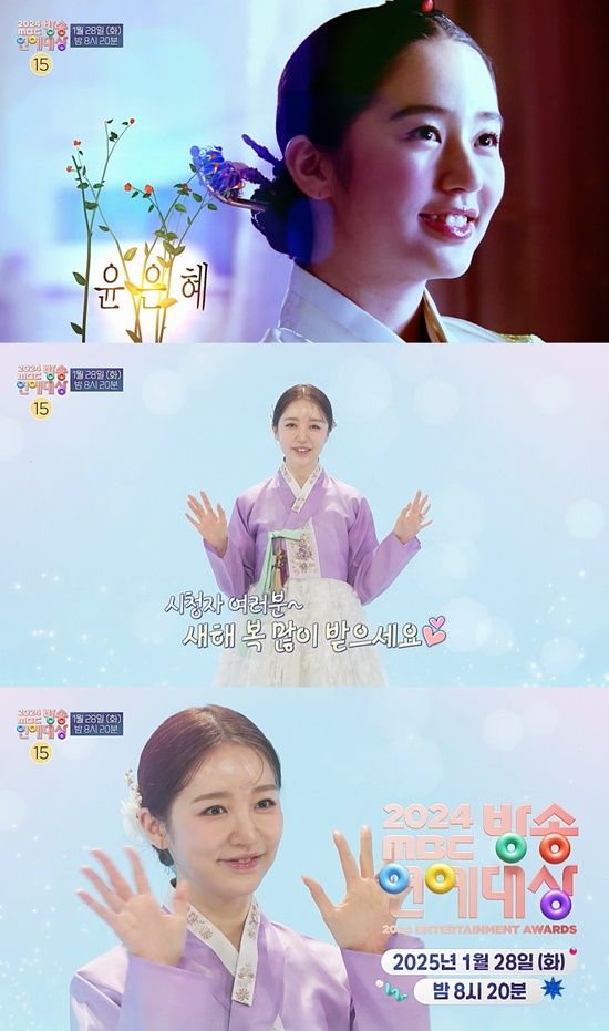 또 "시청자 여러분 새해 복 많이 받으세요"라고 인사를 건넨 윤은혜는 "올해 '2024 MBC 방송연예대상'은 30주년을 맞아 특별히 설 연휴에 찾아갑니다"라며 설 연휴에 생방송으로 찾아올 '2024 MBC 방송연예대상' 시청을 독려하고 있다.