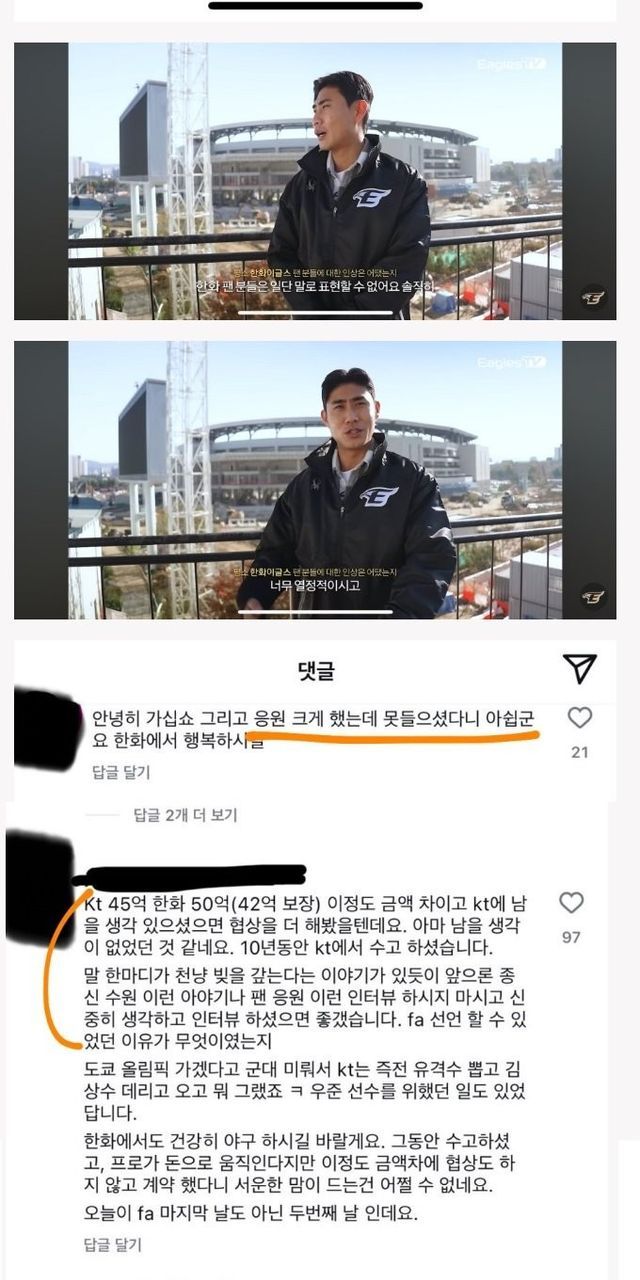 한화 이적한 이유 -> 열정적인 한화팬이 있어서 -> kt 팬 "그럼 우리는 열정적으로 응원안했냐? -> 심우준 까임