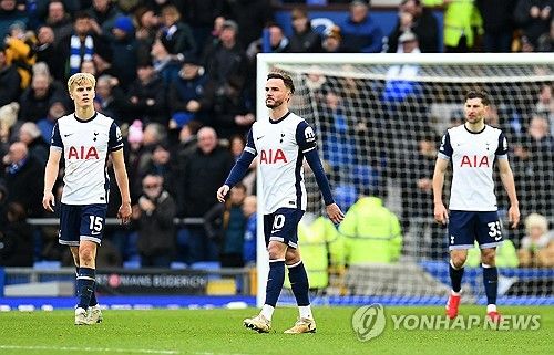 안지 포스테코글루 감독이 이끄는 토트넘은 19일(현지시간) 영국 리버풀의 구디슨 파크에서 열린 2024-2025 EPL 22라운드 원정 경기에서 에버턴을 상대로 전반전에만 내리 세 골을 실점하며 2-3으로 패했다.